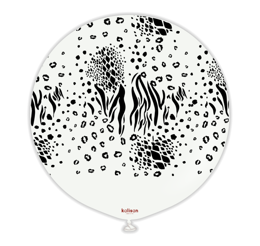 Baloane latex Kalisan 24” (61 cm) Safari Mutant White print Black 1/set