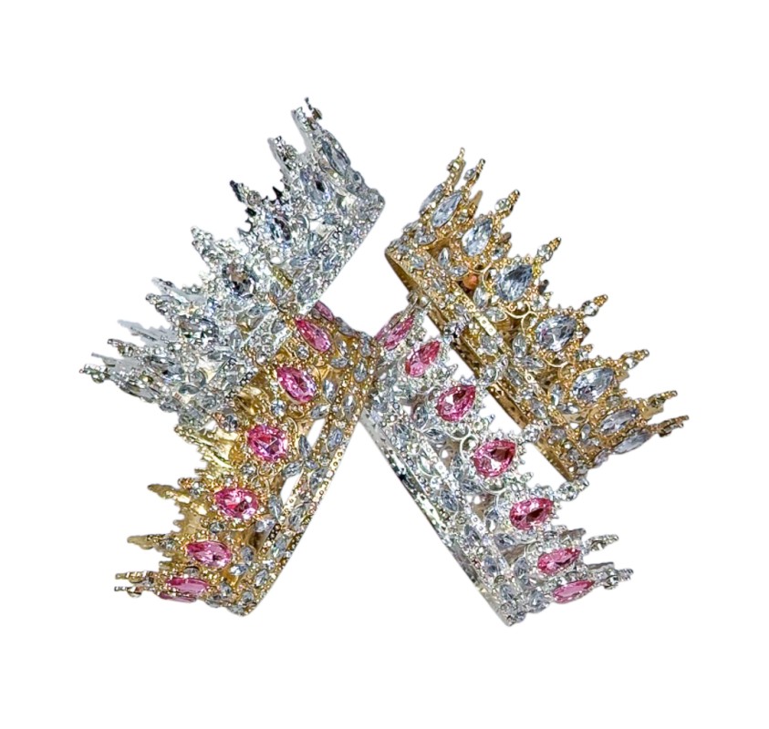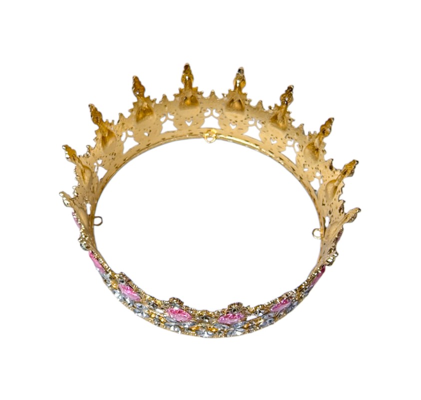 Coronita Queen din metal, aurie strasuri roz