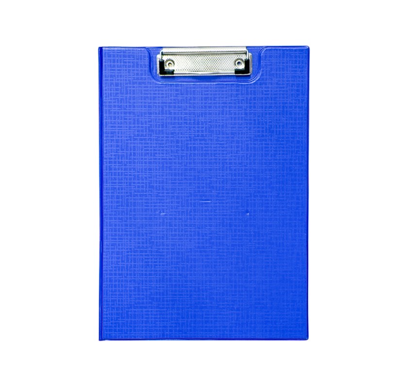 A4 plastic clipboard with metal clip for holding documents.