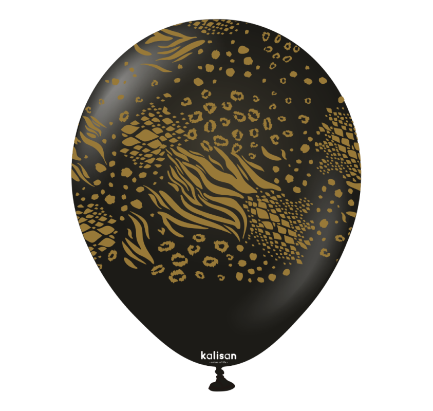 Kalisan latex balloons 12" (30 cm) Safari Mutant Black print Gold 5/set - Cumpara acum Kalisan latex balloons de la www.luvshop.ro!
