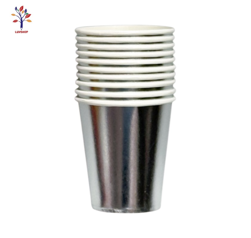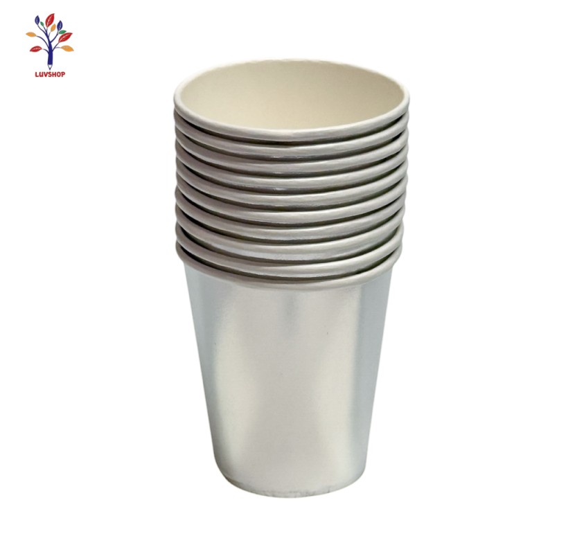 Cardboard party cups 10 pieces in a set, silver color