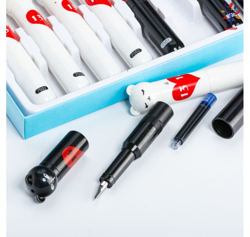 Plastic pen with teddy bear head with normal nib, refill with large reserves, 15 pcs/box 7502 BK24